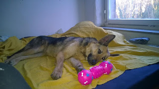Nos mandan mas fotos de Marlene, con su pienso especial, ejercicio moderado y alguna medicación de vez en cuando, tiene su artrosis controlada y disfruta de la vida!